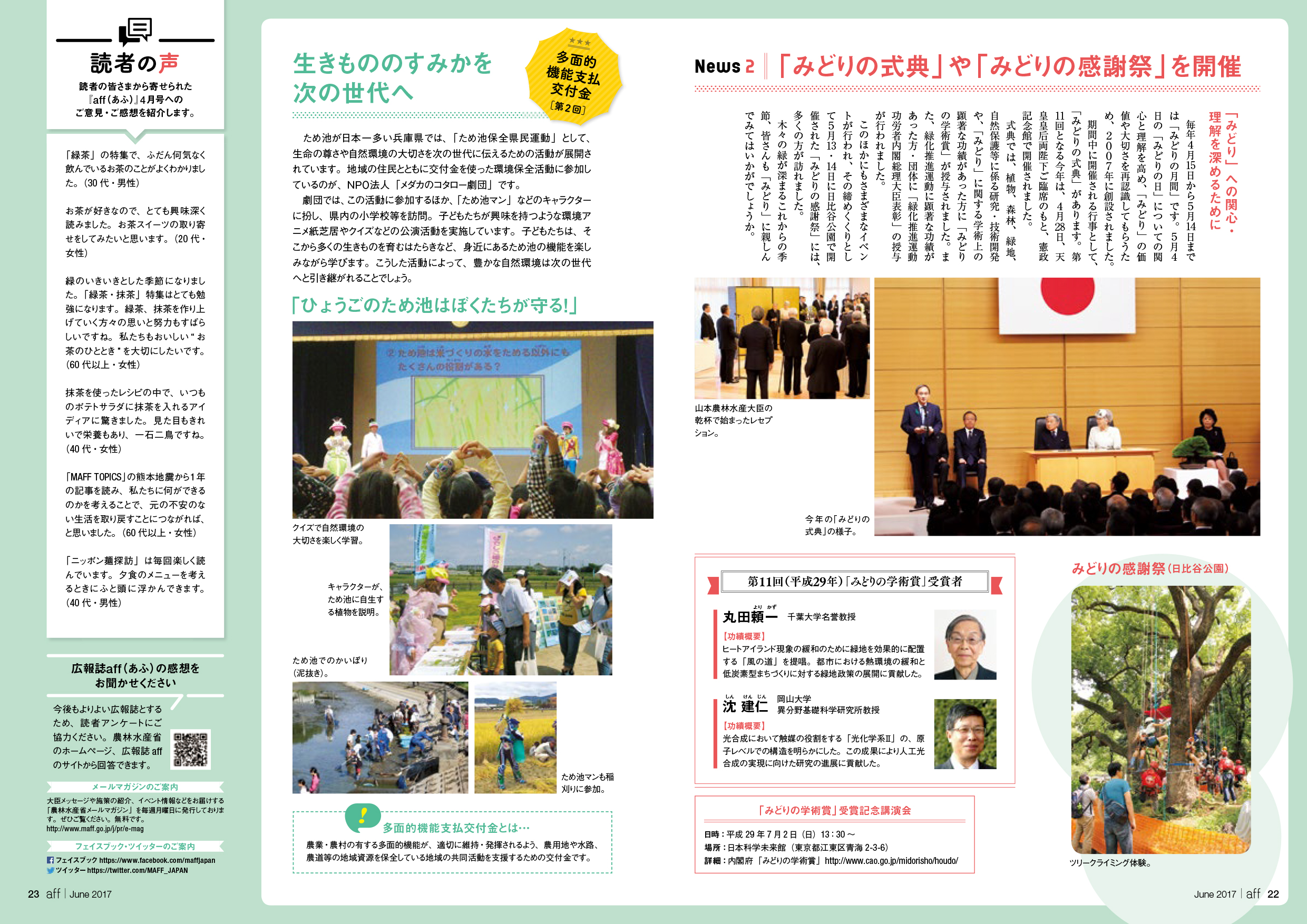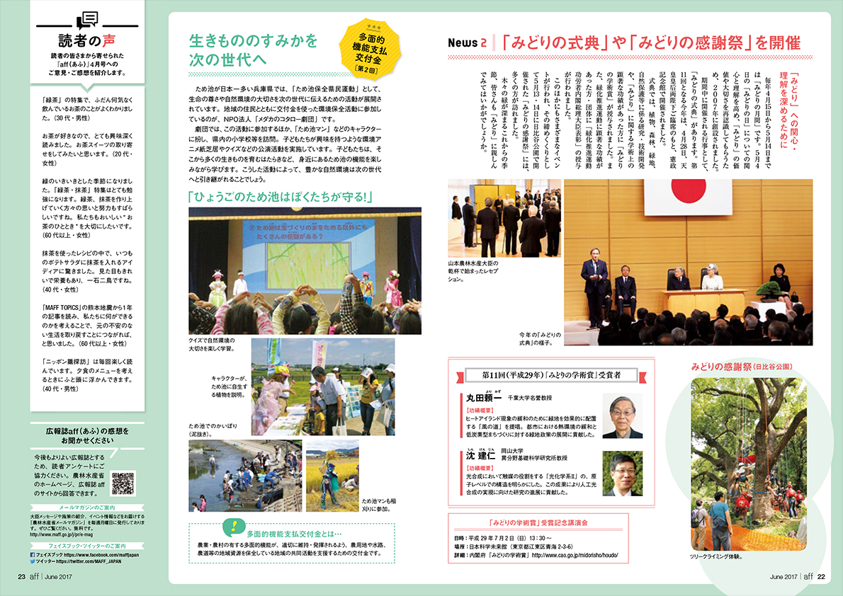 MAFF TOPICS(2) NEWS 「みどりの式典」や「みどりの感謝祭」を開催