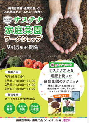 イオン九州では、以下を含む6店舗でサステナブル商品の販売や家庭菜園ワークショップの開催等を実施します。