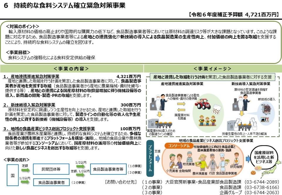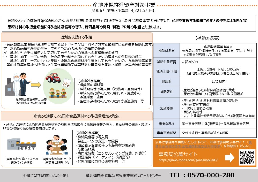 令和6年度持続的な食料システム確立緊急対策事業のうち産地連携推進緊急対策事業(事業実施主体)の公募について:農林水産省