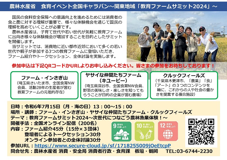 食育イベント全国キャラバン 関東地域 教育ファームサミット2024~次世代につなごう農林漁業体験!~開催について