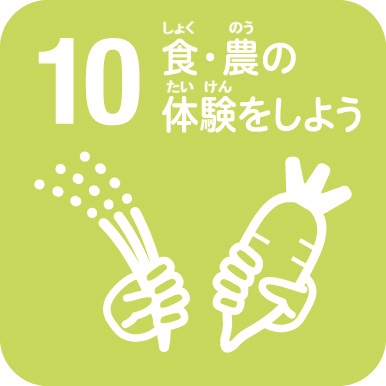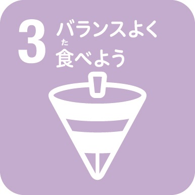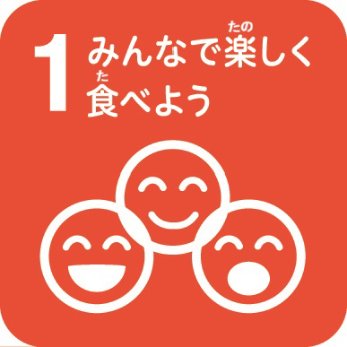 食育の取組をわかりやすく表現し、色については視覚障がい者の方にも判別できるような色としています。また、 SDGsのマークとの併用の際、区別がつくように角に丸みを持たせています。