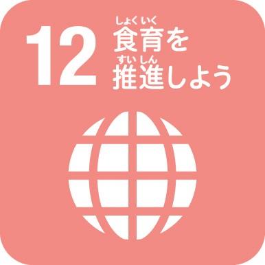 食育マークは、食育ピクトグラムを広く普及・啓発するため「12 食育を推進しよう」を活用したデザインとして、バッジなどの食育の普及啓発に資する物として利用することができます。