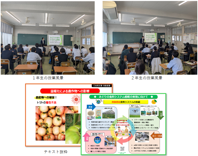 説明後のアンケートでは、みどりの食料システム戦略に対し多くの生徒が関心を持ち、取り組みたいとの意見がありました。