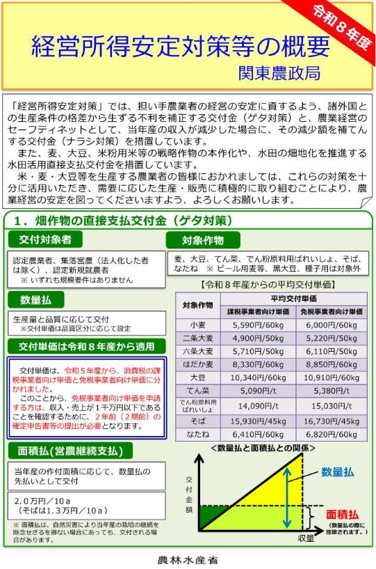 - 令和7年度経営所得安定対策等実施要綱を一部改正しました(令和8年1月時点)(農林水産省へリンク)