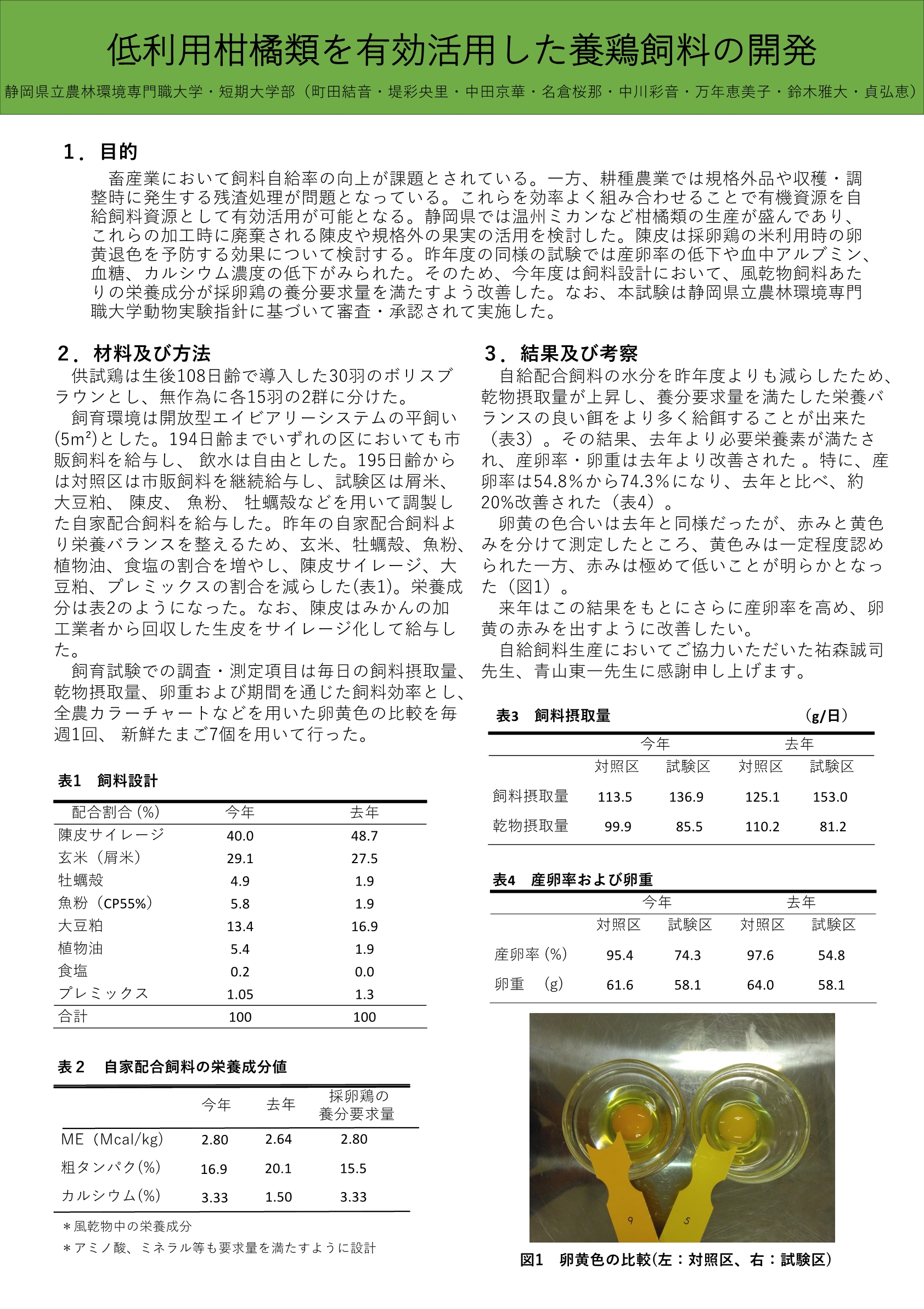低利用柑橘類を有効活用した養鶏飼料の開発