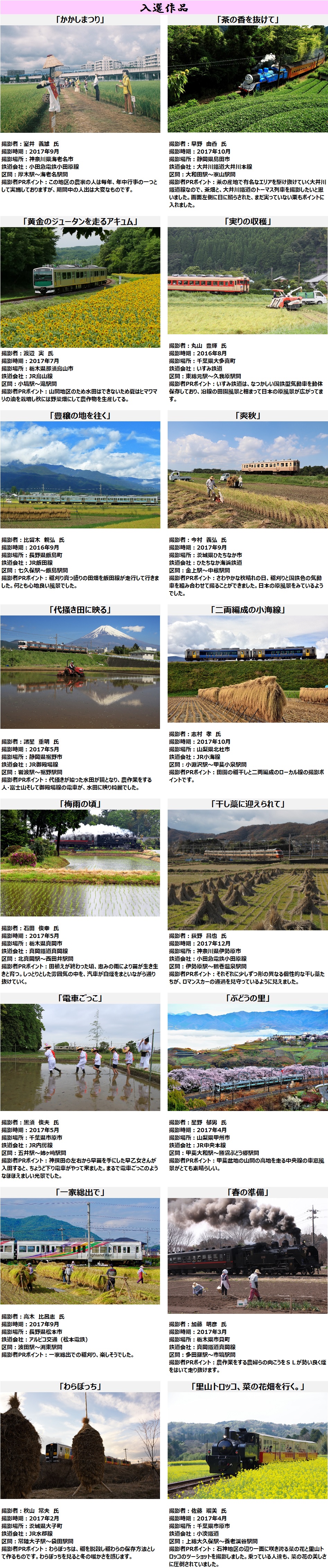 > 第2回農のいとなみと鉄道フォトコンテスト結果発表【入選作品】