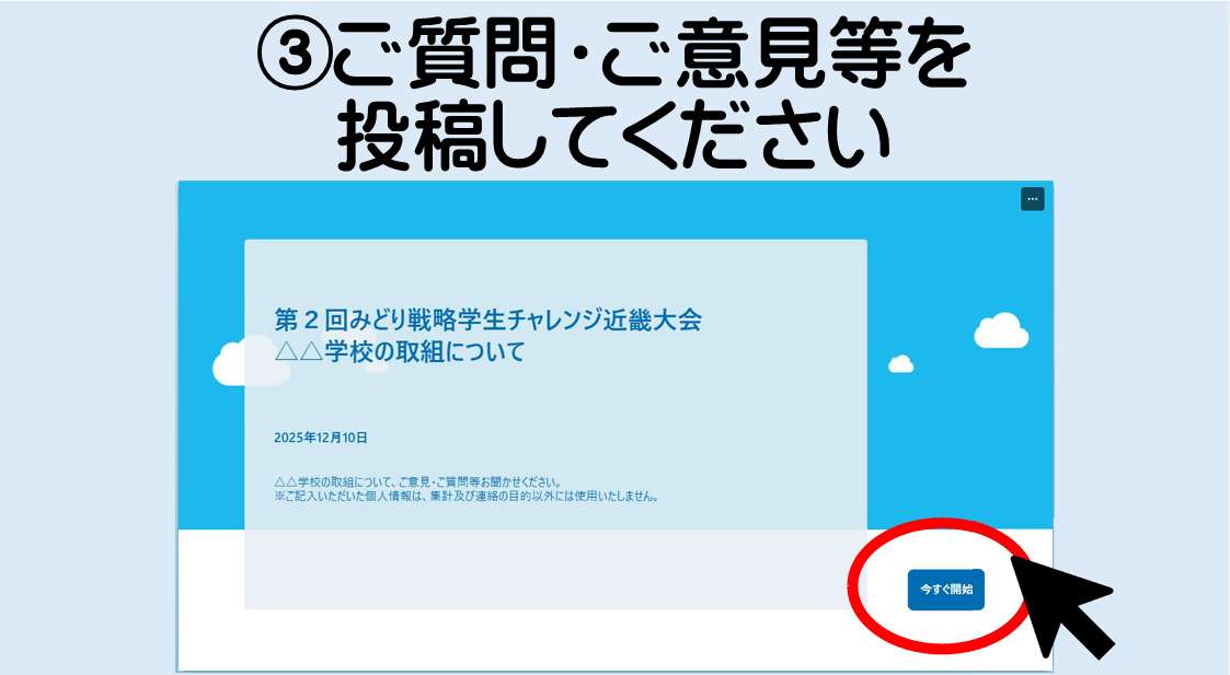 近畿大会では、参加者のみなさまが互いの取組を学びあい、今後の活動の更なる発展に役立てていくために、みなさまの交流促進を目的とした交流サイトを開設いたしました。