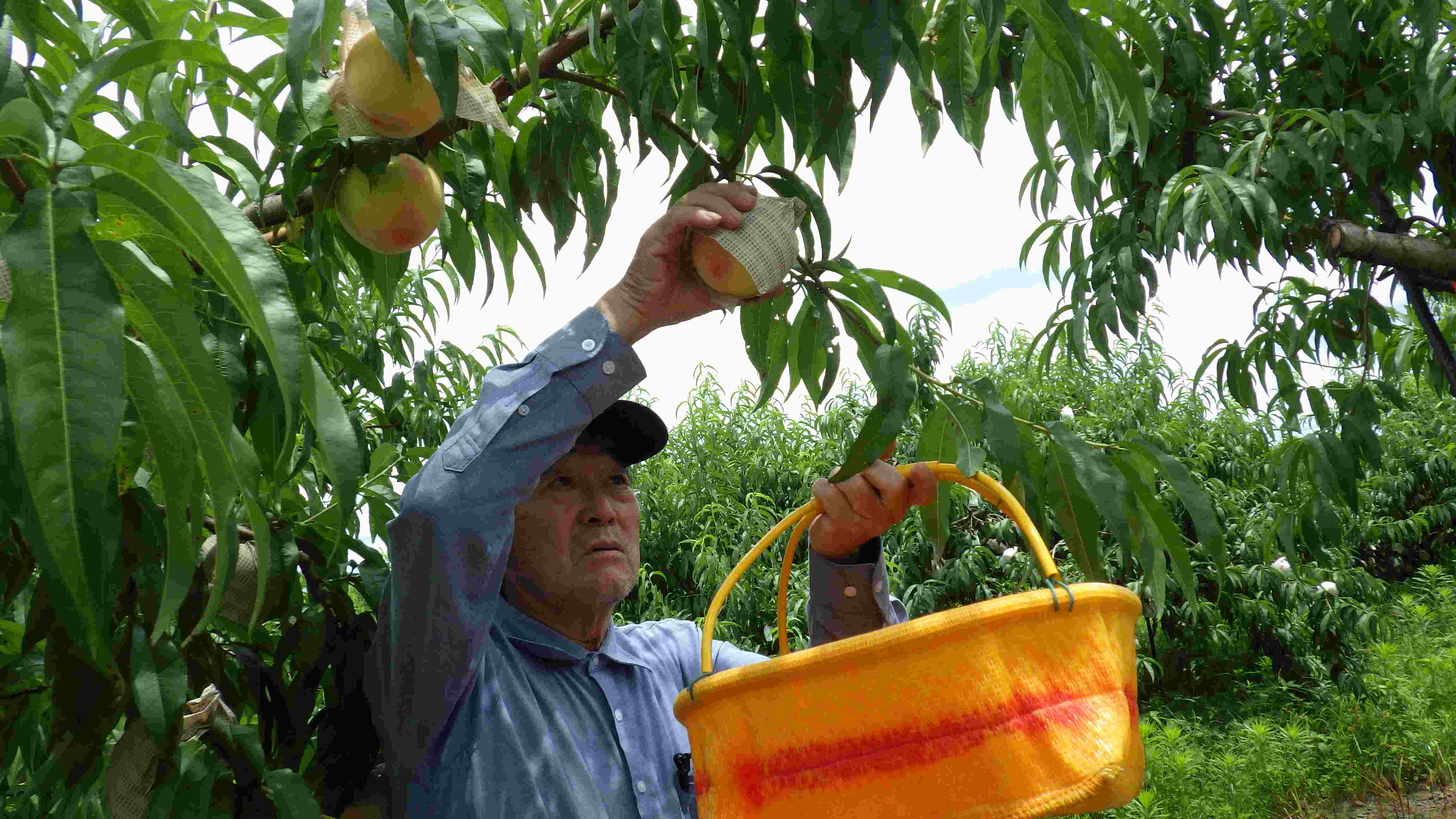桃の収穫作業 一つ一つ丁寧にやさしく収穫