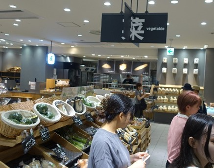 同店は、無印良品の商品だけでなく、生鮮食料品(青果、精肉、鮮魚)や加工食品、総菜なども品ぞろえする食料品スーパー部門も設けています。