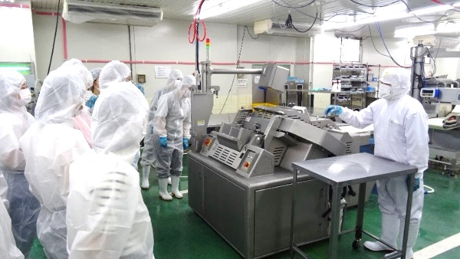 畜産物や水産物の加工ラインを二手に分かれて見学しながら、衛生管理の手法や環境対策を交えた説明を受けました。