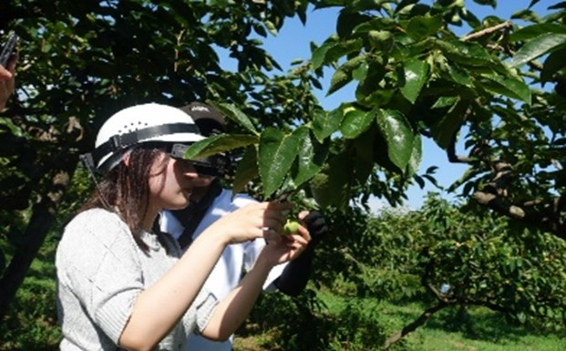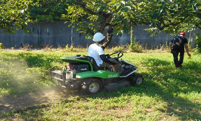 学生はスマートグラスと遠隔操作用のパソコンをつないだ摘果作業や乗用草刈り機を体験しました。