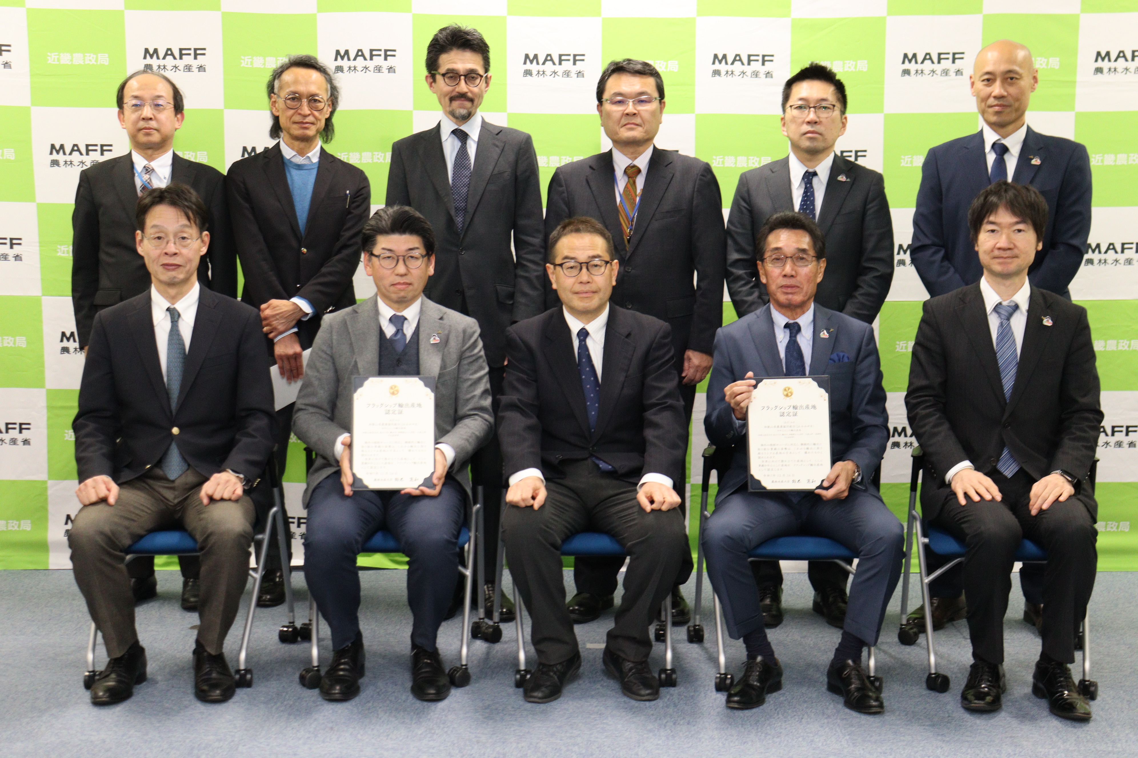 2月20日、近畿農政局で行われたフラッグシップ輸出産地認定証授与後の全体写真