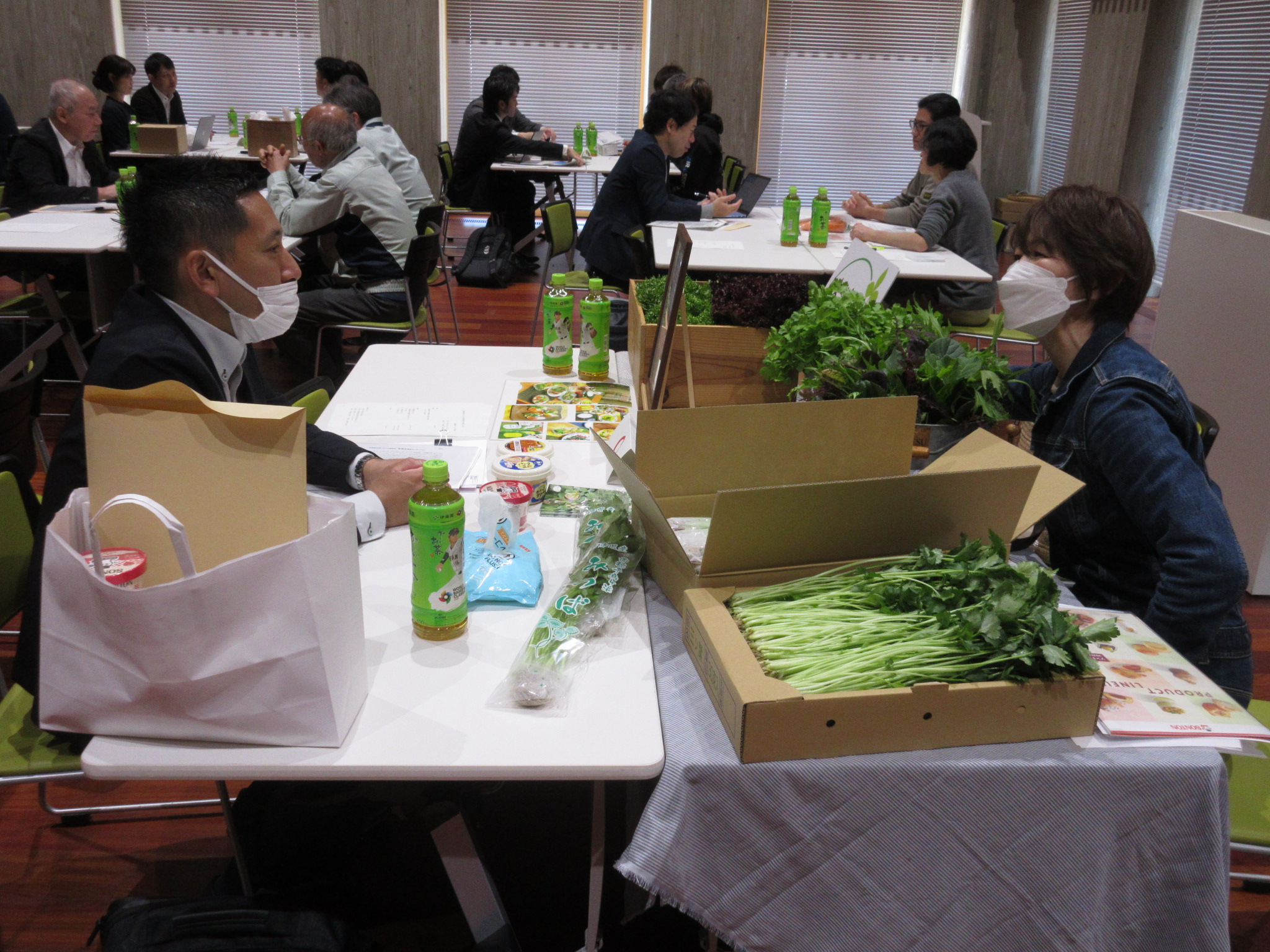 生産者からは「市場価格が安い中で、新たな販路拡大につなげたく参加した。地場に新鮮な野菜があることを知ってもらえてよかった」「販売のヒントをもらえて助かる。モリンガは栄養成分が豊富で変色しない特性を活かしてクリームに加工してはとの提案いただき話を進めていきたい」「実需者からはネット販売を一緒にやりたい、加工品のセットを他の会社に提案したいといった話をいただいた」等、実需者からは「若い生産者が多く将来的に有望な地域と感じた。今後の規模拡大に際して毎年安定的に契約したい旨をお伝えした」「物流がネックであるが、地元の運送事業者と今後話を進めて考えていきたい」「生産者2社から見積もりをもらうことにしたので、引き続き話を進めたい。」等の感想が聞かれました。
