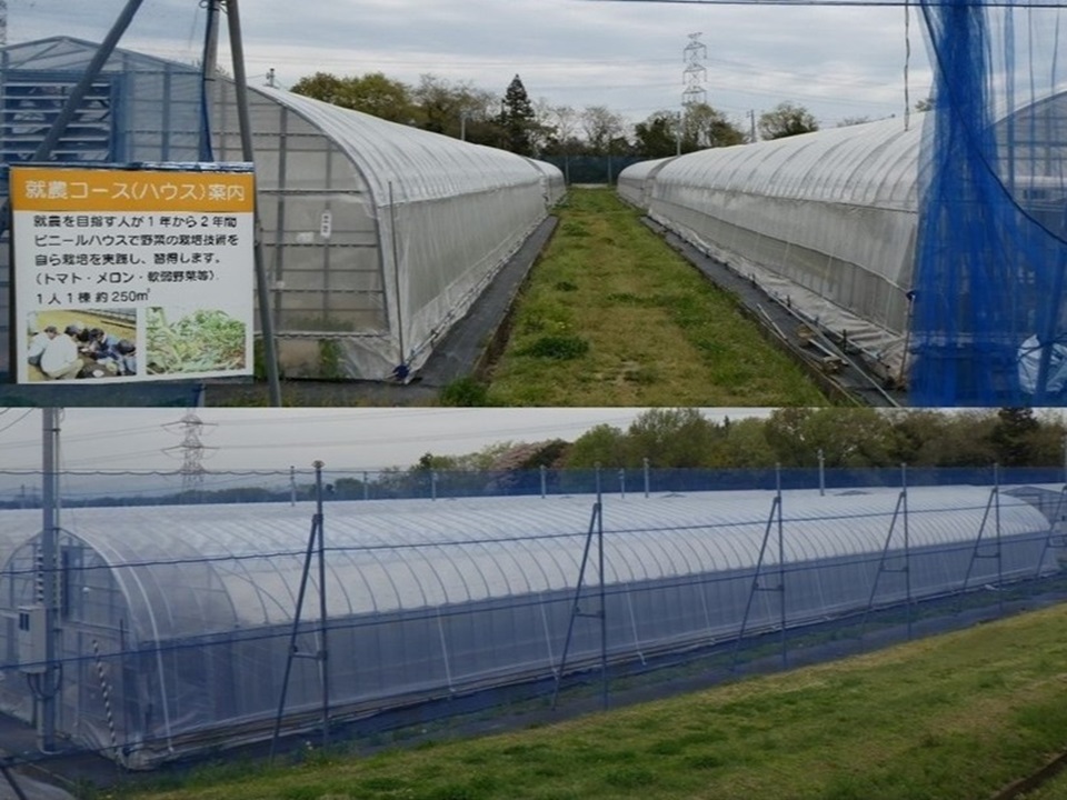 就農コースは、本格的に就農を目指す人を対象に、総合的な農業知識や栽培技術、農業経営管理を習得する研修です。受講生は、1年間、講義に加え、環境制御設備を備えたビニールハウスと露地ほ場を活用した野菜の栽培実習に取り組みます。