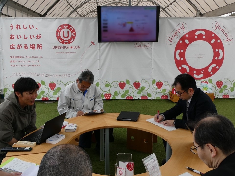 東馬場農園から経営概要や事業戦略、栽培上の工夫等について説明を受けた後、人材確保・育成の取組や今後の課題・展望等について意見交換を行いました。