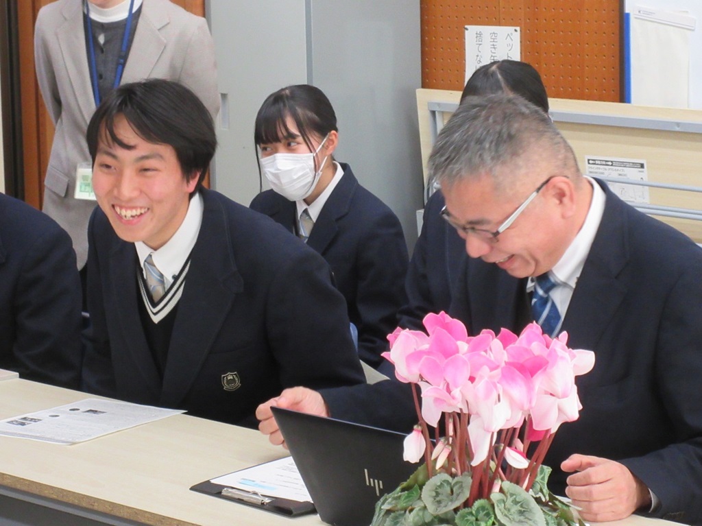 表彰状授与終了後、受賞者及び担当教諭との意見交換を行い、チャレンジに取組んだ感想や、次回に向けたご意見等をいただきました。