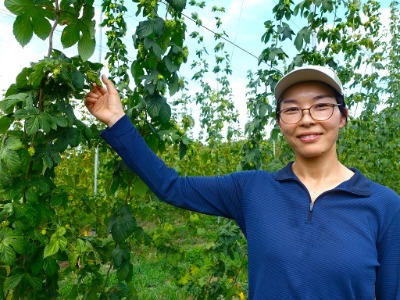 すべて手摘みで収穫することが与謝野ホップの特徴。収穫後は真空冷凍され、乾燥ホップと比べてルプリンが放つ華やかでフレッシュな香りを楽しめるとのことです。また同社も加盟する京都与謝野ホップ生産者組合では、ホップの在庫をスマホアプリを用いて効率的に一元管理しています。同社では「ホップ株主制度」を創設し、株主限定イベントを開催する等、与謝野ホップのファンを増やしていこうと様々な試みを行っています。