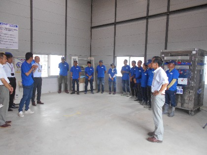 今回は、「竹パウダー」や包装作業中の「さつま芋チップス」を見せていただき、昨年収穫された、さつま芋の貯蔵庫(室温13~15度、湿度80%程度)にも入らせていただきました。