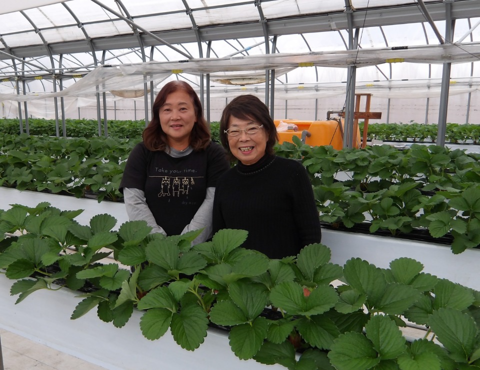 ハウスの運営からいちごの栽培、出荷、販売まで全て一人でこなしてきましたが、最近は母親の玉枝さんの手も借りながら、親子で力を合わせていちご生産に取組んでいます。親子2人で、毎日あれこれ言いながら、いちご栽培に励んでいます。