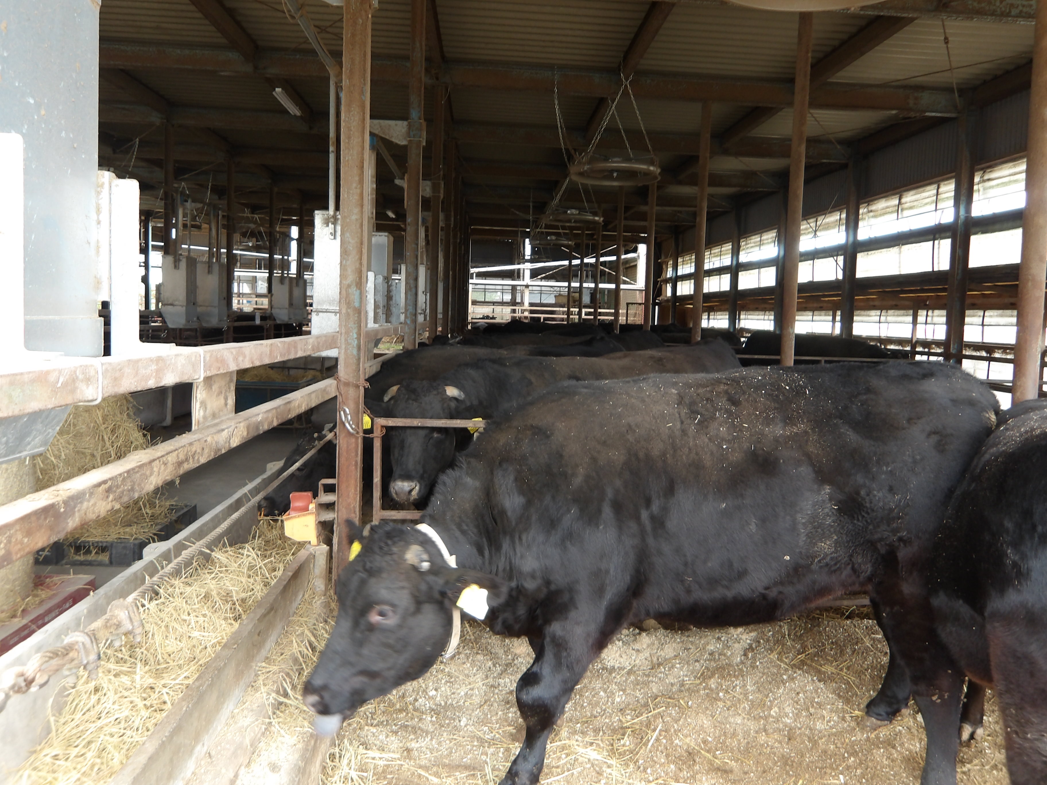 また牛舎の寝床には国産おがくずを使用してこまめに交換し、天井には大きな扇風機を設置して、臭いがこもらないように配慮するなど、牛たちのストレス軽減を図っています。