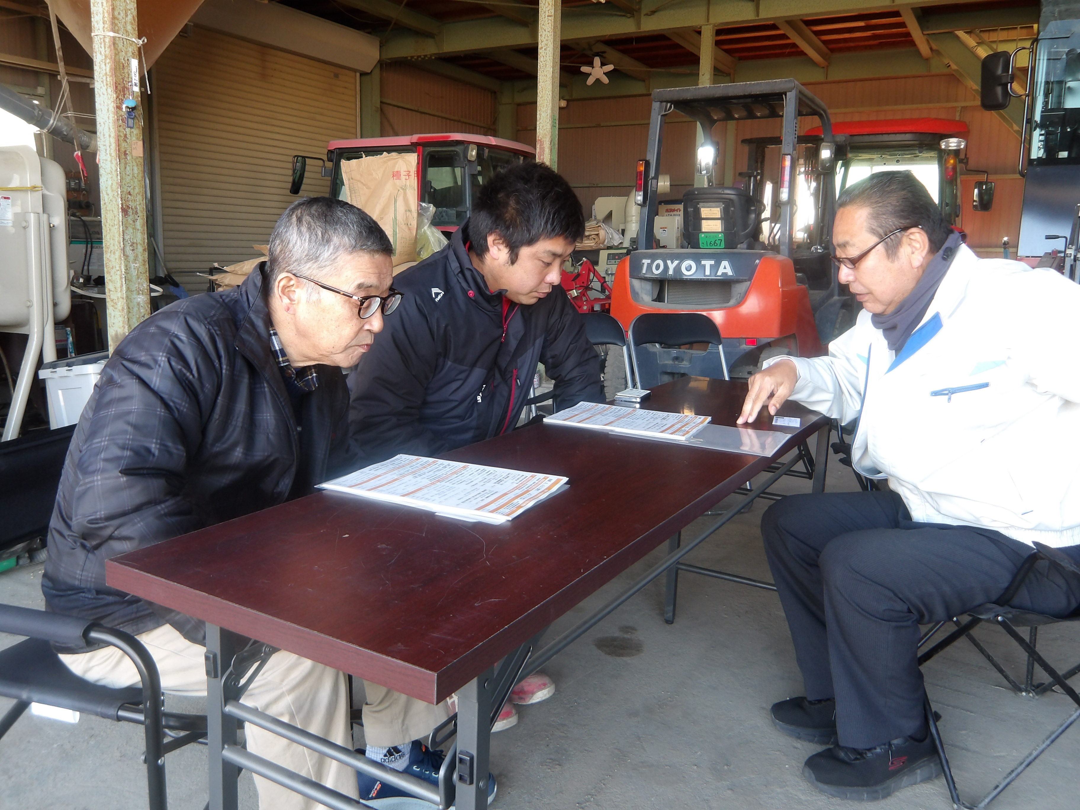 令和7年12月、東近江市建部堺町で水稲・小麦・大豆を中心に生産している山秀ファームを訪問し、農事組合法人の深刻な課題であった担い手不足への対応策や現状の取組、将来展望等について意見交換を行いました。