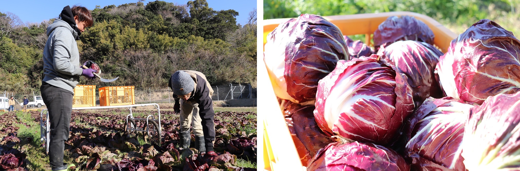 JA紀州から資機材や栽培指導等の技術的サポートを受け、試験栽培に取り組みました。トレビスの苗は、JA紀州の施設で育苗したものを9月に定植。12月~2月にかけて収穫しました。