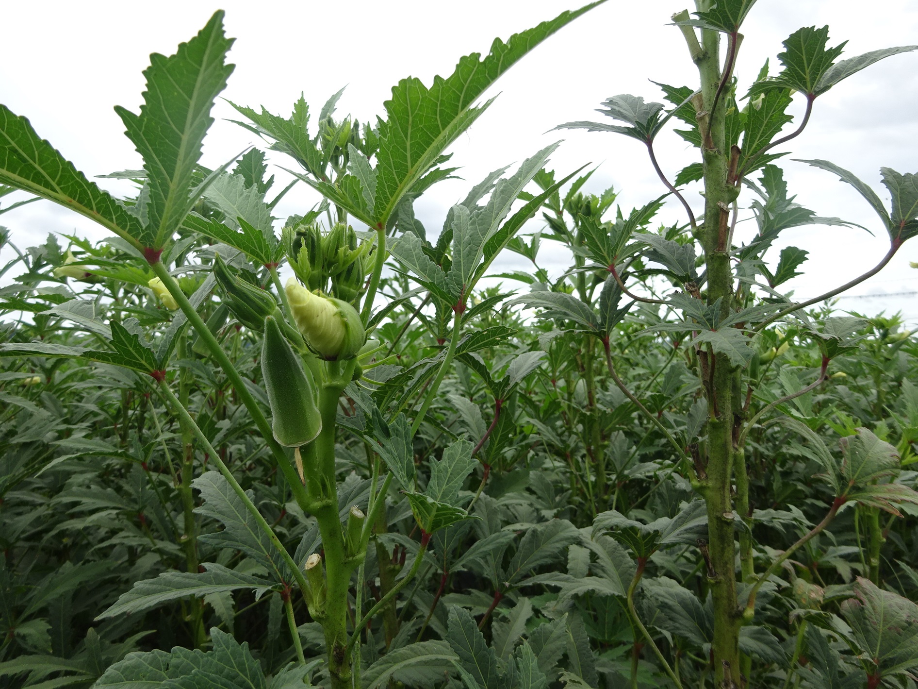 タマネギ、オクラ、ナス、ソラマメ、菜花、ハーブ