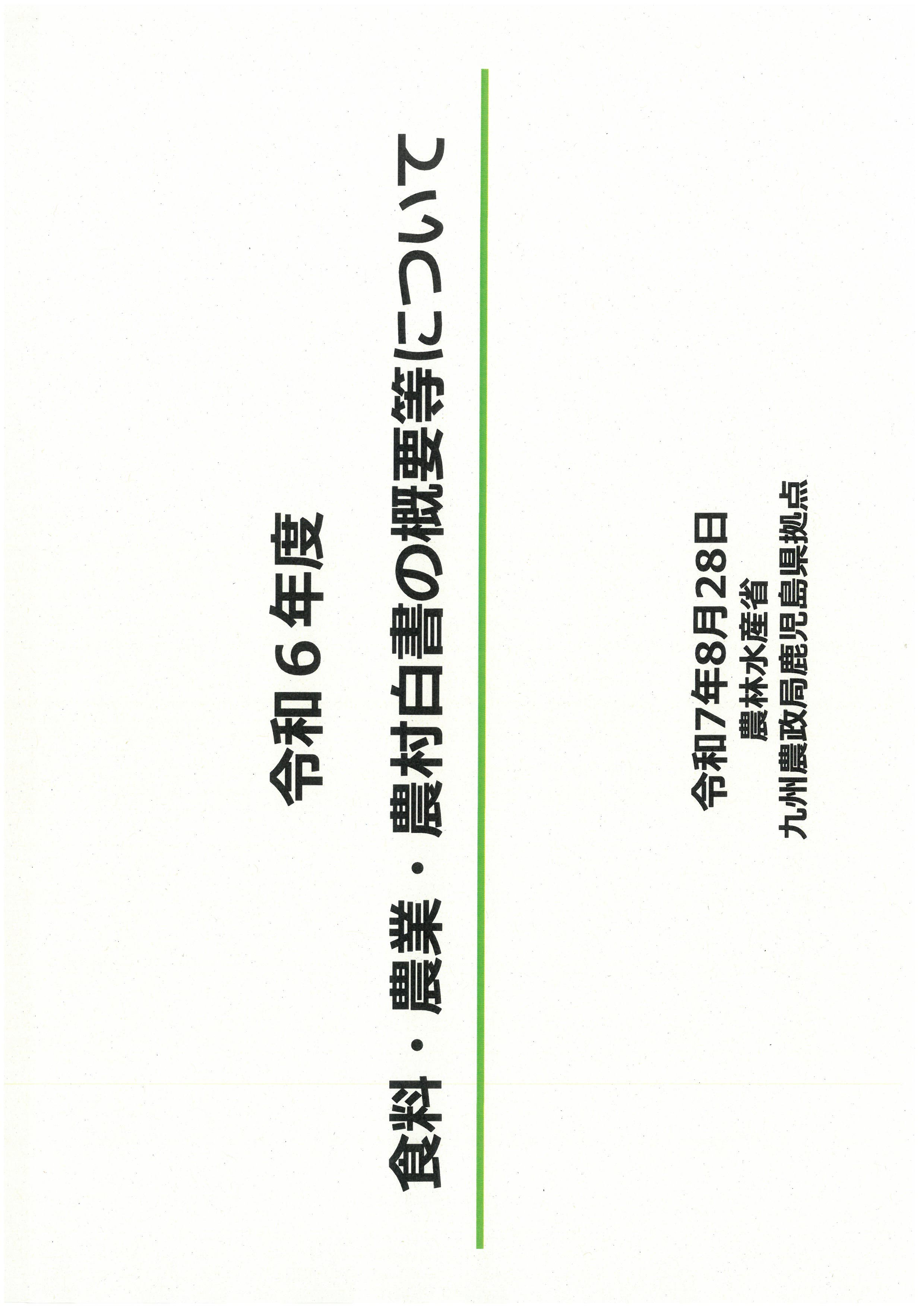 このうち、令和6年度食料・農業・農村白書の概要等について、九州農政局鹿児島県拠点による説明会を開催いたします。