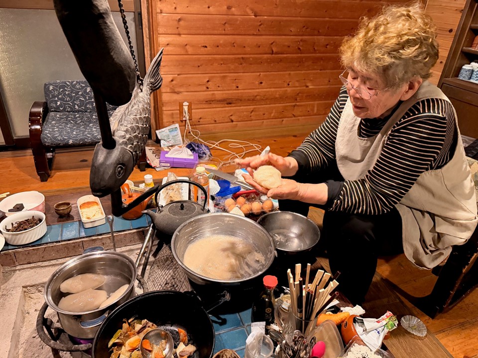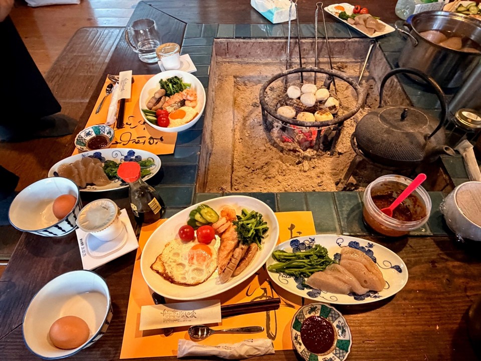 囲炉裏を囲んでの食事は、心も体も温まるひとときを過ごせます。