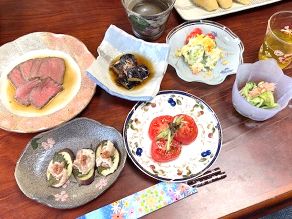 夕食では興梠ご夫妻が畑で収穫した野菜を使ったメニューが並びます。