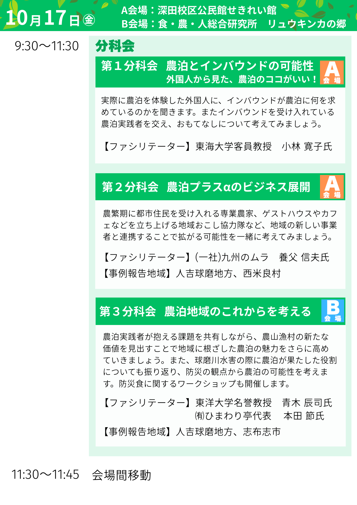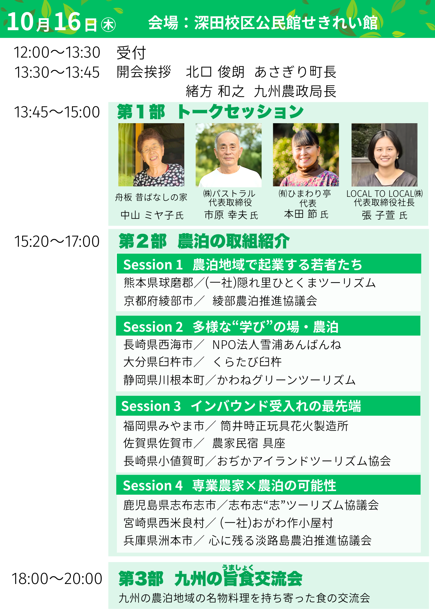 - 参加対象:九州内の農泊実践者、農泊をはじめようと考えている方、行政関係者、大学生