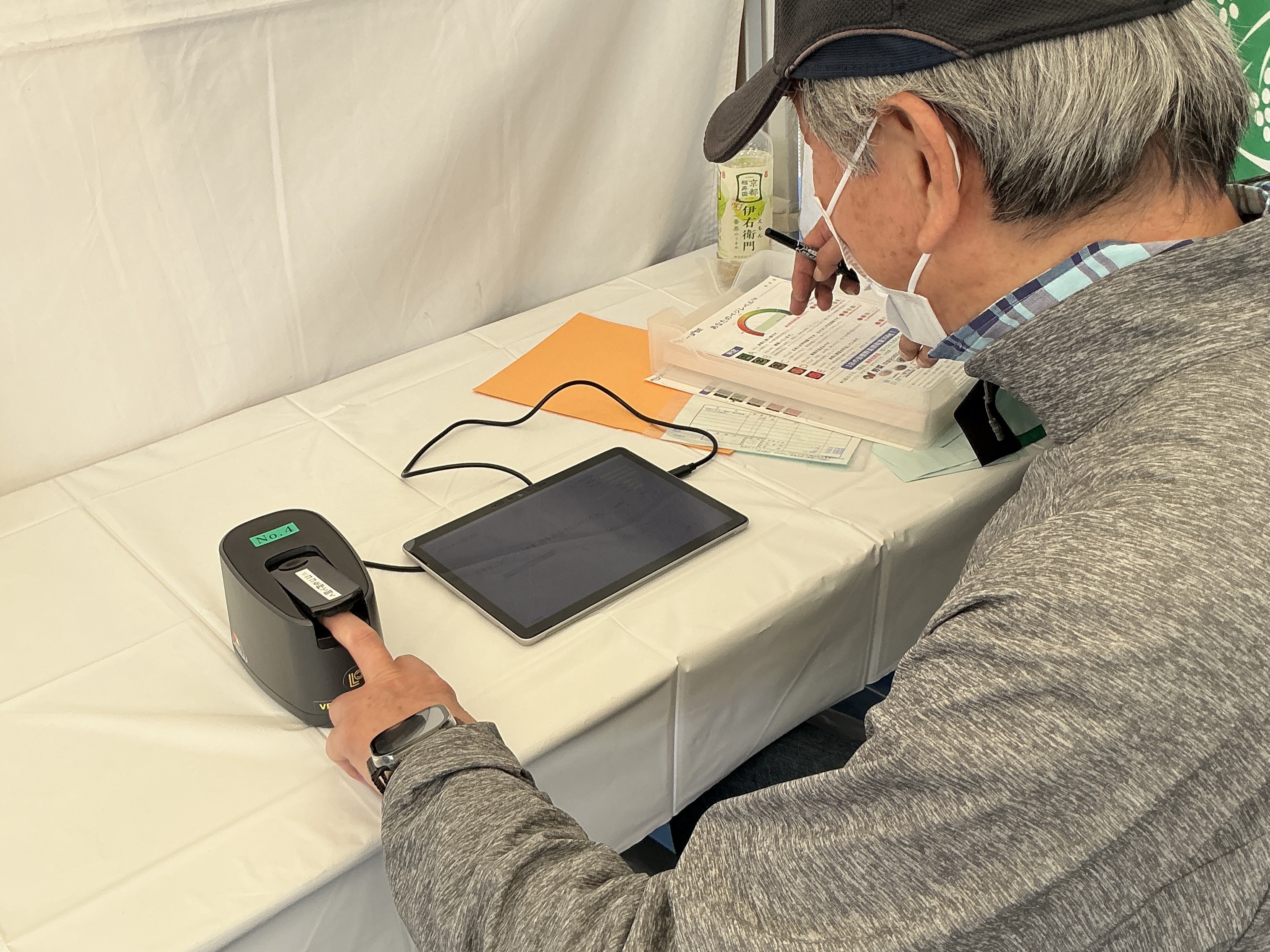 令和7年12月7日(日曜日)、福岡市東区千早のガーデンズ千早 ちはや公園内センターガーデンで開催された「NIPPON FOOD SHIFT FES.福岡 2025」に九州農政局として出展しました。「食から日本を考える。ニッポンフードシフト」に係るパネル展示や「野菜足りてますか?(野菜摂取量の測定体験)」、「私の食べたいおにぎりお絵かき」などを行いました。野菜摂取量測定体験へは200名以上に参加いただき、A判定(推定野菜摂取量350g以上)の方が約13%という結果でした。