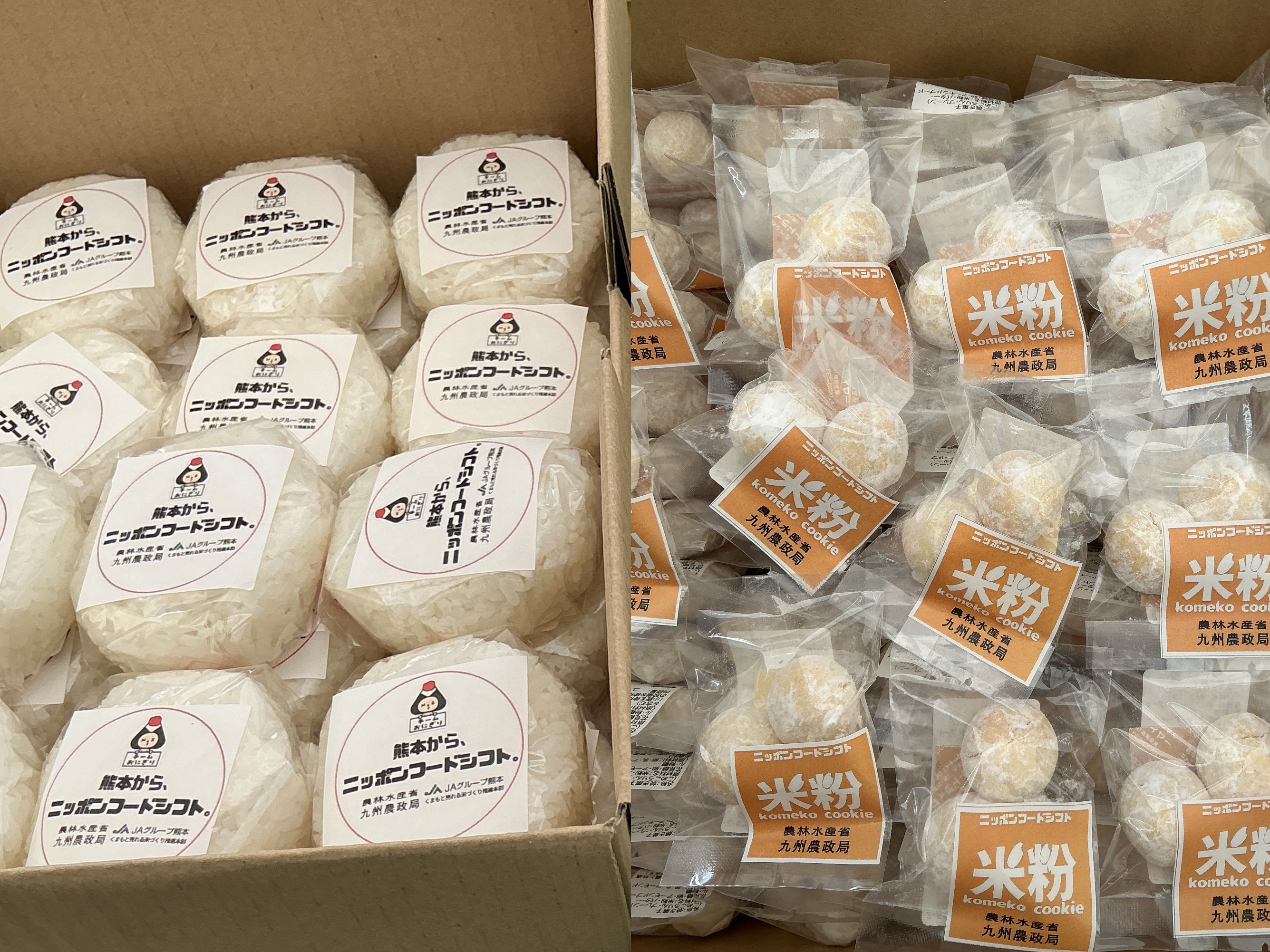 米と米粉に関するアンケートを実施し、回答者には熊本県産米を使用したおにぎりや、熊本県産米粉を使用した米粉クッキーを先着順で配布しました。