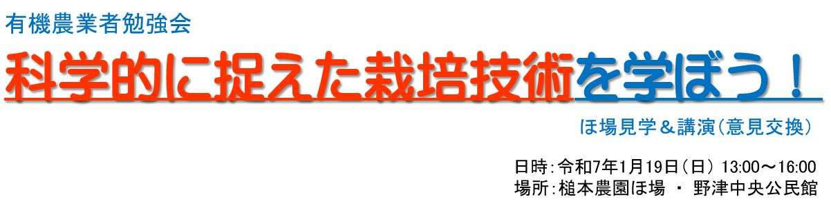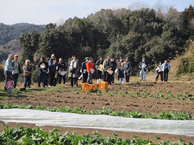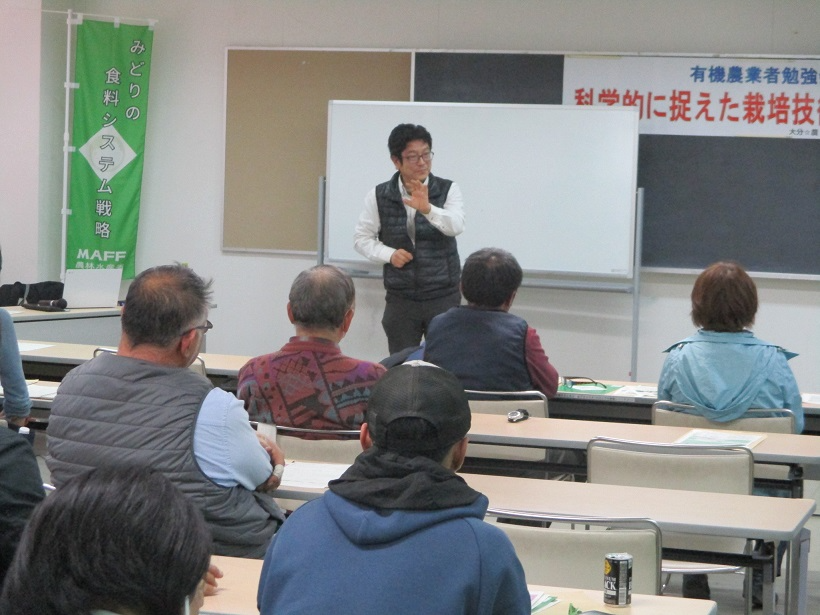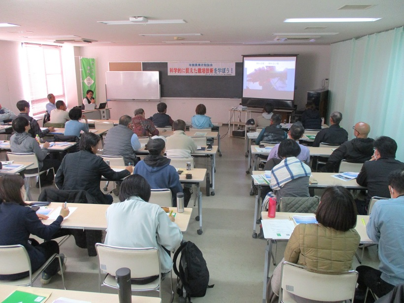 農業を科学的に捉えた栽培技術や有機農業の経営を学ぶとともに、参加された皆さんの交流を深めることにより、環境にやさしい農業に取り組む産地や農業者の拡大に繋げるため、ほ場見学と講演による有機農業者勉強会を産地開催しました。