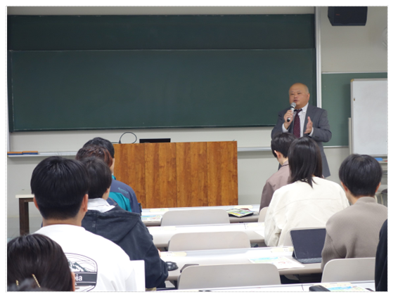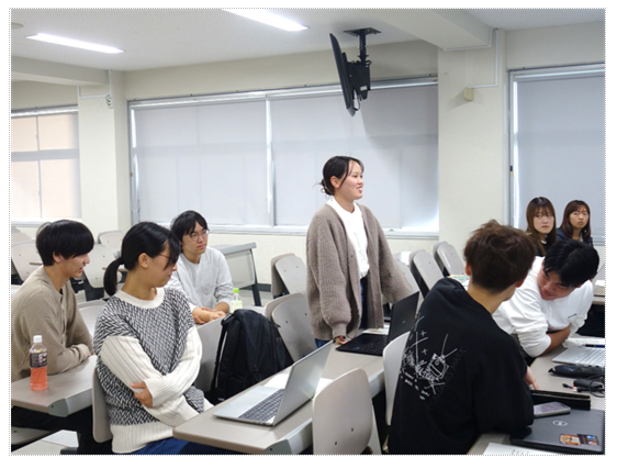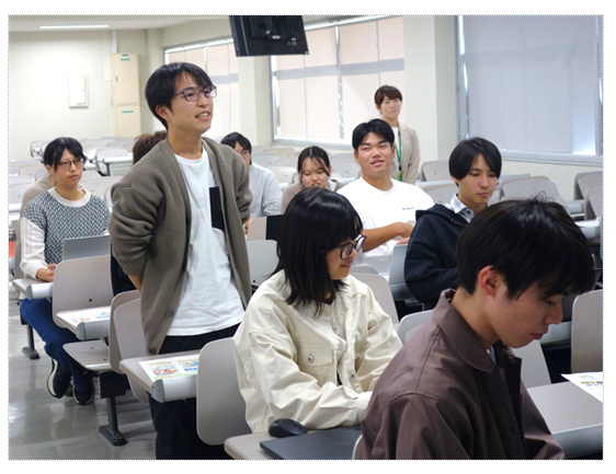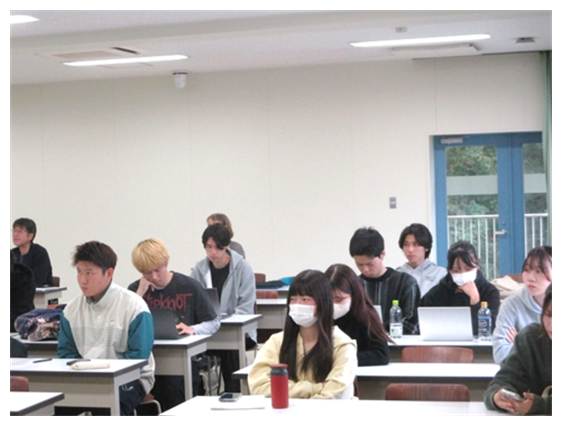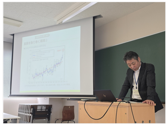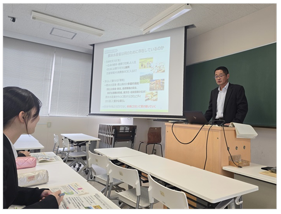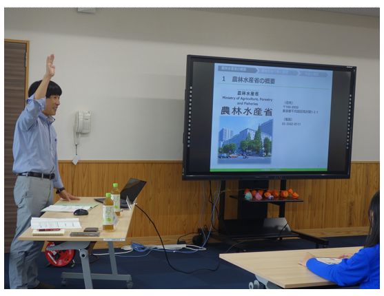 11月12日、経済学部・理工学部の1~4年生25名を対象に出前授業を行いました。「食料・農業・農村基本法の概要」、「農業を取り巻く現状」について説明の後、「農業の課題や現状を聞いて思ったこと」、「もし自分が農林水産省職員ならどのような政策で課題解決を図るか」をテーマにグループディスカッションを行いました。