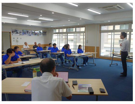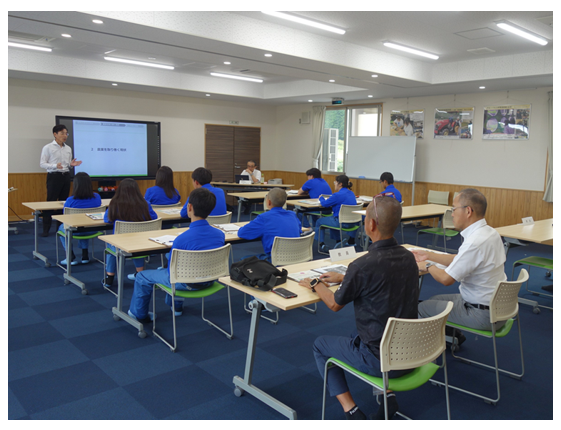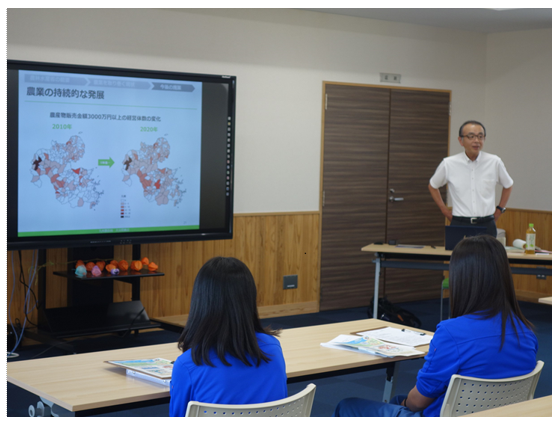 9月17日、大分県立日出総合高校が、農業経営科1年生9名を対象に大分県立くじゅうアグリ創生塾で行う「アグリ研修会(2泊3日)」のカリキュラムの1コマとして、「食料・農業・農村基本法の概要」、「農業を取り巻く現状」について出前授業を行いました。