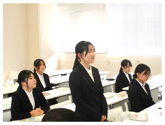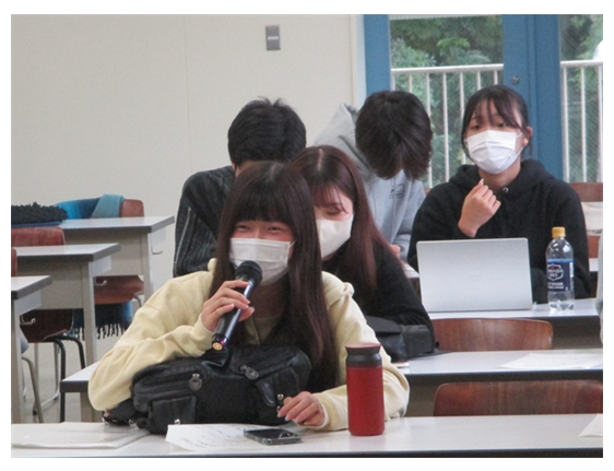 学生からは、農業を取り巻く現状について、「食料生産の安定と環境政策の重要性を再認識した。農業従事者は、圧倒的に男性が多いというイメージがあるため、ICT機器やスマート農業等を活用し女性でも働きやすい環境整備を行うことが必要。」、「農業従事者・担い手不足という現実を改めて実感した。」、「農業従事者(担い手)を増やしていくことが大切。農業に従事することは簡単ではないが、就農準備をきちんと行えば何歳からでも始められるのが農業のメリットでもある。」などの意見が出されました。今後の改善策として「担い手不足の対応策として、耕作放棄地など未利用農地を若者に1年程度レンタルし農作業をしてもらうなどの体験が大切。」、「農業従事者を増やす(確保)ためには収入の向上が必要だが、輸入農産物が安く販売されているという現状があるので、国産農産物を購入(消費拡大)しやすくする施策が必要。」、「積極的にICT機器・スマート農業等で支援することが女性農業従事者の増加に繋がるのではないか。」など、多くの意見が出されました。また、今年産の主食用米の収穫量と消費者への販売価格の動向についての質問もありました。