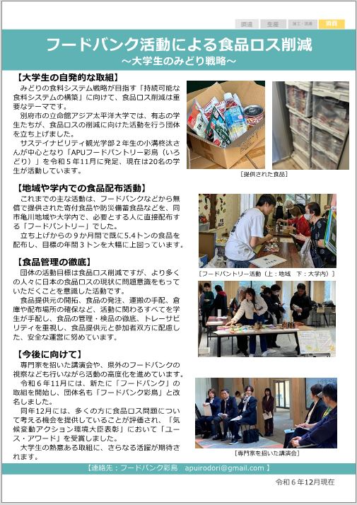 フードバンク活動による食品ロス 削減~大学生のみどり戦略~(PDF : 355KB) |