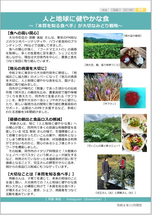 九州農政局大分県拠点では、この戦略の推進に貢献されている方々を訪問取材し、その内容を広く紹介する取組を進めています。