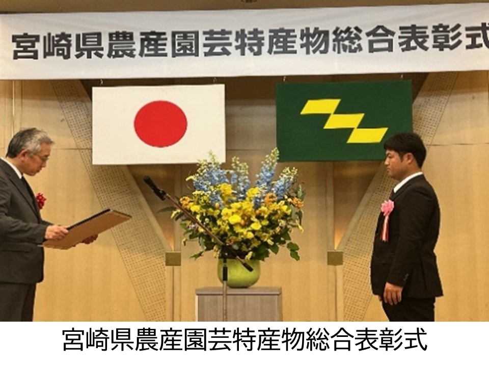 宮崎県農産園芸特産物総合表彰式は、うまい米づくりコンクール、加工用米・飼料用米多収コンテスト、野菜、花き、果樹、茶及び葉たばこの各共進会において優秀な成績を収められた農業者や団体の業績を称え、農家経営の向上と地域農業の一層の発展を図ることを目的に開催されています。