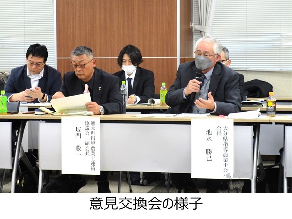 会議では、農政局から輸出促進や地域計画策定の推進等の情報提供、公庫からは融資を通じた支援事例等の説明があり、その後、公庫の田口常務取締役ほか、九州の各支店の農林水産事業統轄と、輸出や農業生産の動向など活発な意見交換を行いました。