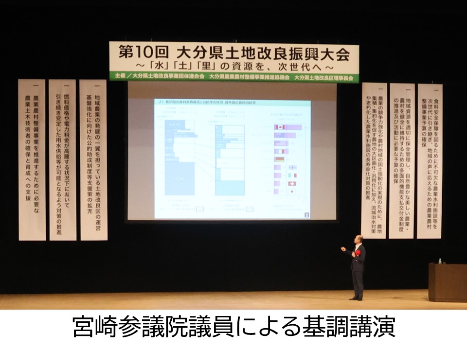 令和7年1月29日(水曜日)に宮崎市(宮崎市民文化ホール)で開催された「令和6年度 日本のひなた多面的機能推進大会」に緒方九州農政局長が出席しました。 本大会は、宮崎県内から多面的機能支払交付金の活動組織(農家、土地改良区など)や関係者、約800人が参加し、(一社)農村振興センターみつけの業務アドバイザー椿一雅氏による基調講演「多面的機能支払農村の広域的な連携」や活動組織による事例発表が行われました。