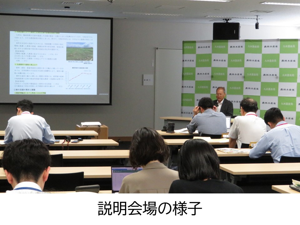 令和6年7月16日(火曜日)に、「見たい!知りたい!九州農業2024」を公表しました。「今年の話題」として「食料の安定供給のために」を掲げ、記者説明会においては、吉永九州農政局次長から、担い手や農地の減少、生産資材の高騰などに対する取組事例を説明し、記者との活発な質疑応答が行われました。
