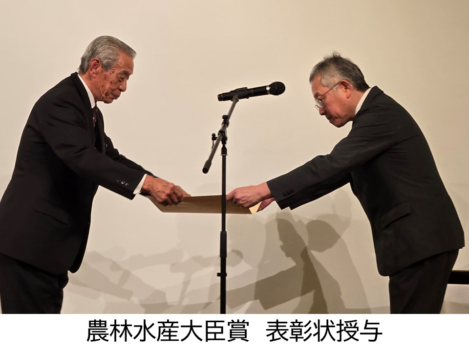 表彰式では、河野宮崎県知事より県知事賞、北林九州農政局長より農林水産大臣賞が授与されました。