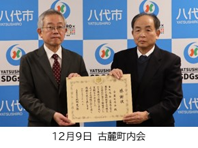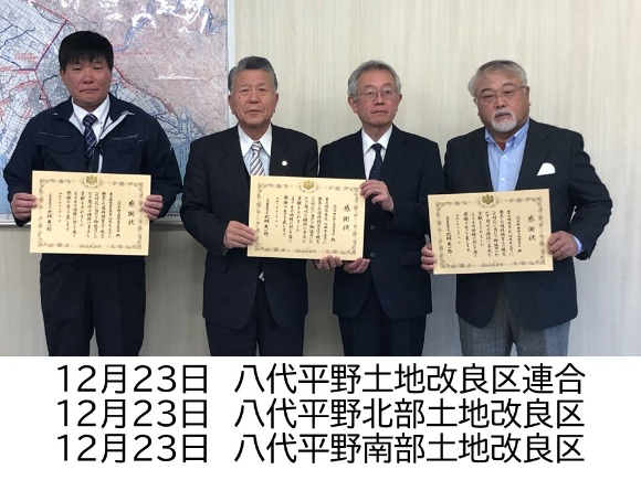 北林九州農政局長等から関係機関へ、遥拝頭首工被災対応御協力いただき用水確保に多大な貢献をされたことについて、感謝状を贈呈いたしました。