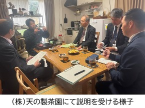 令和6年12月12日(木曜日)に吉永九州農政局次長が、熊本県水俣市の株式会社天の製茶園において有機栽培の茶と和紅茶の生産・販売に関するの独自取組の説明を受けたのち、現地の視察を行いました。