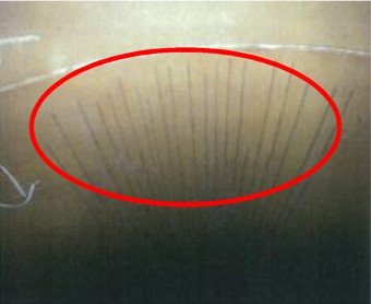 管頂亀裂発生(黒線部) 空気弁発錆による作動不良