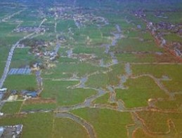 網の目のように発達した用排兼用水路 前歴事業によりほ場整備と併せて用排兼用水路を統廃合