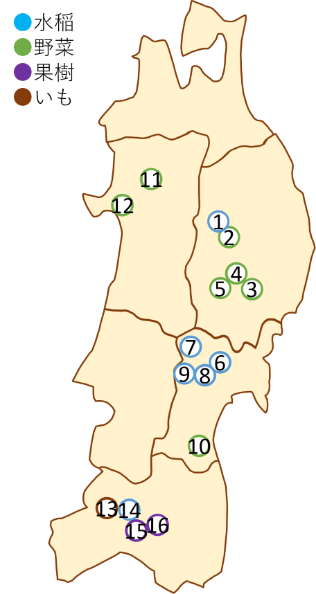 | 山形県 | 15 | 新庄市 | 水稲 | 記載 ページ |