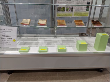 【(エ) トーストを例に焼き色とアクリルアミド濃度の関係の展示】 |